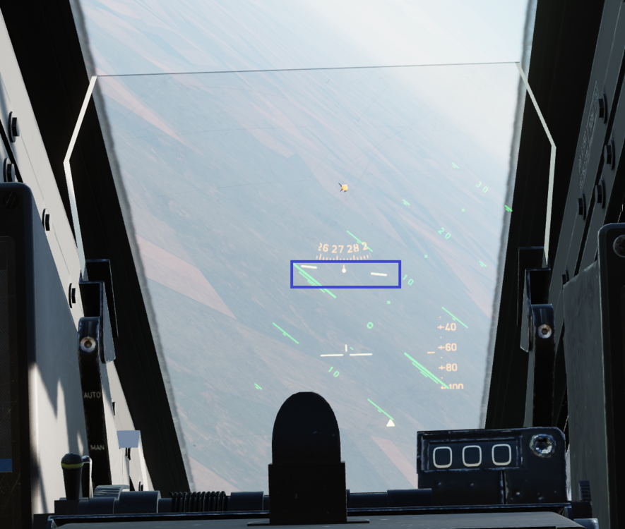 Hi, been away from the F1 a while and just got back into it lately. I understand the radar-assisted gunsight has been somewhat implemented by now , however I do not know what this icon (I marked it in blue on thepicture) on the HUD represents, it seems new and I couldn't find it in the manual. It looks similar to the gun pipper , but with only two lines extending left and right. Kind regards, Snappy