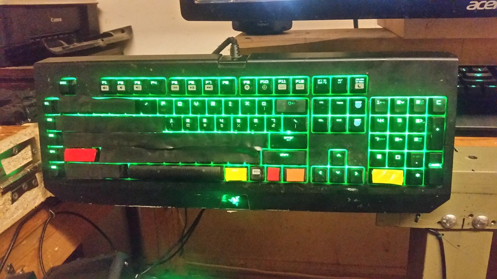 4. I had an old program-able keyboard I was not using and came up with this... a bit closer view I was able to switch the key caps around.So I changed the numbers on the NumPad to match the UFC and set up two rows of buttons sort of like an Armament Control Panel.Stations,Mode,fuze,etc... Now to see how well it works in game! :pilotfly: