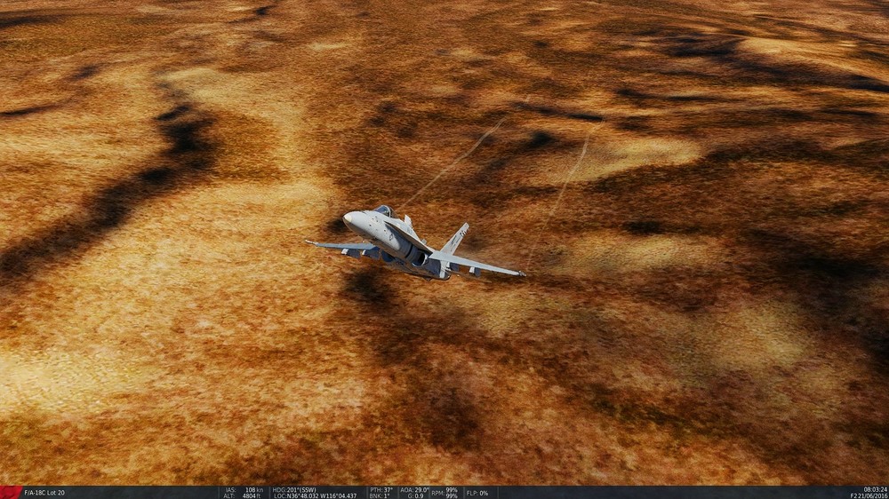 For me it feels that AI for Hornet is some way off. Made two basic 1-1 dogfight missions (F16 vs F18). With Intercept, AI just went nuts. Basically went from 15k to lover floor with very slow speed, around 200 or less and stalled all the time. Tried to engage me but no good skills where used. AI was linked to intercept me and skill set Ace. Standard setup in ME. Other was Fighter Sweep, much better but AI get to quickly too slow and just drops in a time to the floor around 200 or less and again stalls - keeps AOA 29 almost forever! and cannot get out from that. Tried this many times, same results. Other AI does not have this issue, using the same template. In the picture with fighter sweep, keeping the angle and cannot get out. -