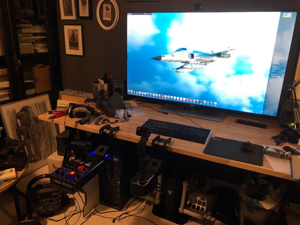 Heatblur will "soon" release its F-14 module and I want to start preparing to get most out of that experience - given constraints (more of that below). I am grateful for any educated advice the community could provide. I am to renew my entry-level sim rig having nineties HOTAS (Saitek X36F & X35T) which served me well when Falcon 4.0 was the thing. Now though I think I need a new HOTAS, pedals and perhaps even a chair - while controls are primary here. Before I took a dip into DCS World I thought Thrustmaster Warthog is no brainer choice once I would decide to upgrade my HOTAS. I must say my small number of hours with DCS has already been a childhood dream come true. The sim is so good and level detail is mind-blowing. I thought I was an avid hobbyist in flight sims but now I know I am really a early-stage learner. Starting to investigate the market a bit I am starting feel that TM Warthog is not actually the state of the art (for budget less than 1 k€ for HOTAS and pedals). I ask of any educated comments and experience of a broader experience that what currently available HOTAS and pedals solution is recommended for a budget under 1 k€. I don't necessarily want spend the whole sum if there's no significant difference to a lets say a 500€ setup. My main requirements, constraints and expectations. I like to... * ...fly modern combat aircraft (while occasionally civilian too) * ...have great number of functions * ...have great precision and durability * ...have authenticity of real plane - not mandatory - F14 sticks don't seem to come around in market today. * I use TrackIR * I can have some easily setup desk mounts but I occasionally want to clean my desk fully. The desk is full oak so it has some durability and structural strength. * Thrustmaster's pendular rudder system seems to be the most sophisticated offering for pedals currently available. * With stick and throttle I am confused between niche higher end offerings from Virpil, VKB, FSSB and likes. Or is mainstream TM Warthog really just as good while just different. It would be an easy option to procure. I attached a picture of my current setup. Thank you already for taking the time and consideration.