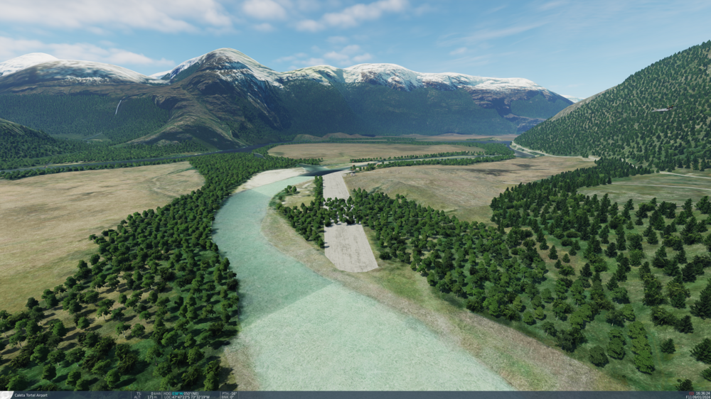 I understand that this airport is very far from important areas and it's not even easily shown in the F10 map, however there's some beautiful terrain around and I love to fly there. Well, since the last update, there's trees in the middle of the runway and what used to be a river just before the runway is now a river colored hill. Aerodromo O'Higgins has a similar issue, albeit less serious: some trees are very close to the runway and I am pretty sure that's not the case in real life. I don't think these issues have already been reported but I do apologize in case they have. Keep improving the map and happy new year! below two screenshots for reference