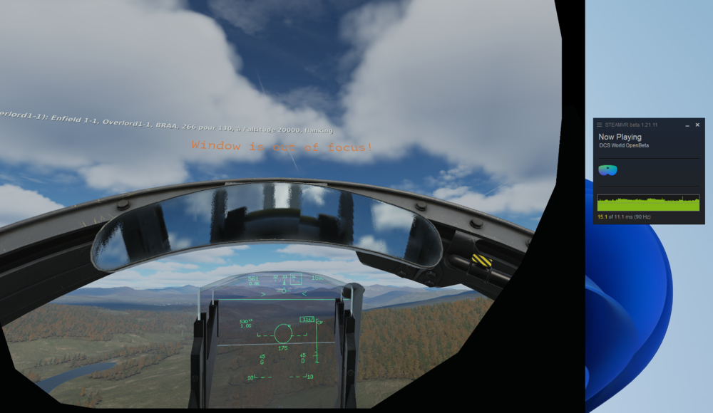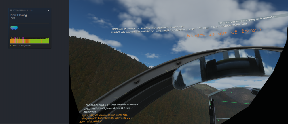 Hi folks, I feel like I've read every topic, tried every potential fix, followed every VR guide for DCS. I still have random frametime spikes that makes the game almost unplayable from time to time. My hardware/settings : - CPU : 12600K @4.9Ghz all cores - RAM : 32Gb Gskill DDR4 3600mhz C15-20-20-39 Gear 1 - GPU : EVGA 3080 Ti FTW3 Ultra, 1935 mhz@875mv - SSD : WD SN850 1Tb - VR : Reverb G2 (with v2 cable) - Virpil WarBRD base + Warthog stick + Warthog Throttle - Fresh win11 installation - SteamVR beta + WMR for SteamVR beta - DCS OpenBeta - Latest nvidia drivers - Mothing smoothing forced - SS 100%, PD 1.0 - I play only MP My problem : - When I spawn, frametime is excellent, everything is fine and in the green. After a few minutes (2-10), I have sudden frametime spikes while flying (could be yellow, red or pink, or all of them). It’s not just a matter of time because it doesn’t happen if say i stay on the ground and don’t do anything. - I can usually make spikes disappear by clicking on the steamVR window a couple of times (or Alt+Tab, or going to the task manager), but after a few occurence, there's nothing more I can do and it's not playable anymore. - I'm not able to identify what trigger this. Haven't found any specific thing. What I did : - Followed speed-of-heat tutorial (thank you) - tried putting everything back to stock (no OC) - disabled fullscreen optimization for DCS - no weird export file - cleared metashaders - no RGB or monitoring software running Any help would be greatly appreciated