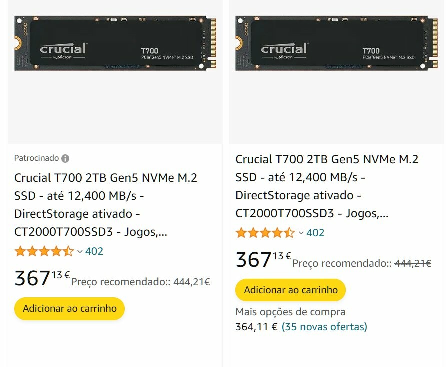 That must be in the US, which means it's a very particular scenario for a restricted part of the world. I'm currently looking at Amazon sites in Europe (ES, IT, DE, FR, NL) and they all list the Crucial T700 2TB at 365,00 EUR ($500 USD). Meanwhile, excelent Gen4 drives like the WD SN850X 2TB and Corsair MP600 Pro XT 2TB (heatsink included!) are at or under 150,00 EUR ($164 USD). Looking around, these prices are also reflected (so, generalized) across different places all over the EU. I can only suspect, but likely similar in the Eastern side of the world as well. So, no, NVME5 Gen5 drives (Crucial T700 or others) are still not worth it, when they still are at well over 200% cost against top Gen4 drives. Absolutely not recommendable. Just get a good Gen4 drive. Be it for your current or upcoming system (yes, even if building a brand new system!), at such prices it's a no-brainer.