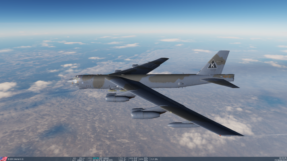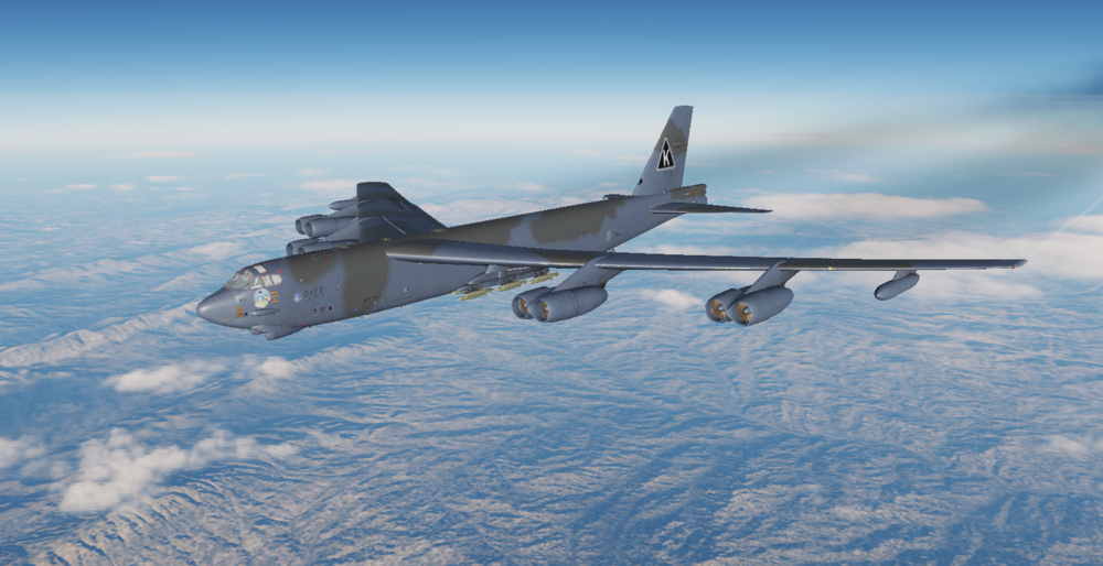 Ok, time to see if I can figure out how to load a livery up on the User Files section. The first one will be a semi-fictional recreation of B-52G Let's Make a Deal (58-0173) from the 379th Bomb Wing during Desert Storm. The nose art was recreated from a photograph I took while visiting the USAF Museum at Wright-Patterson AFB a few years ago. The rest of the details are recreated from various online sources. Unfortunately, since we have yet to figure out all of the custom args of the B-52 liveries the tail section isn't accurate as far as where the reg numbers are located.