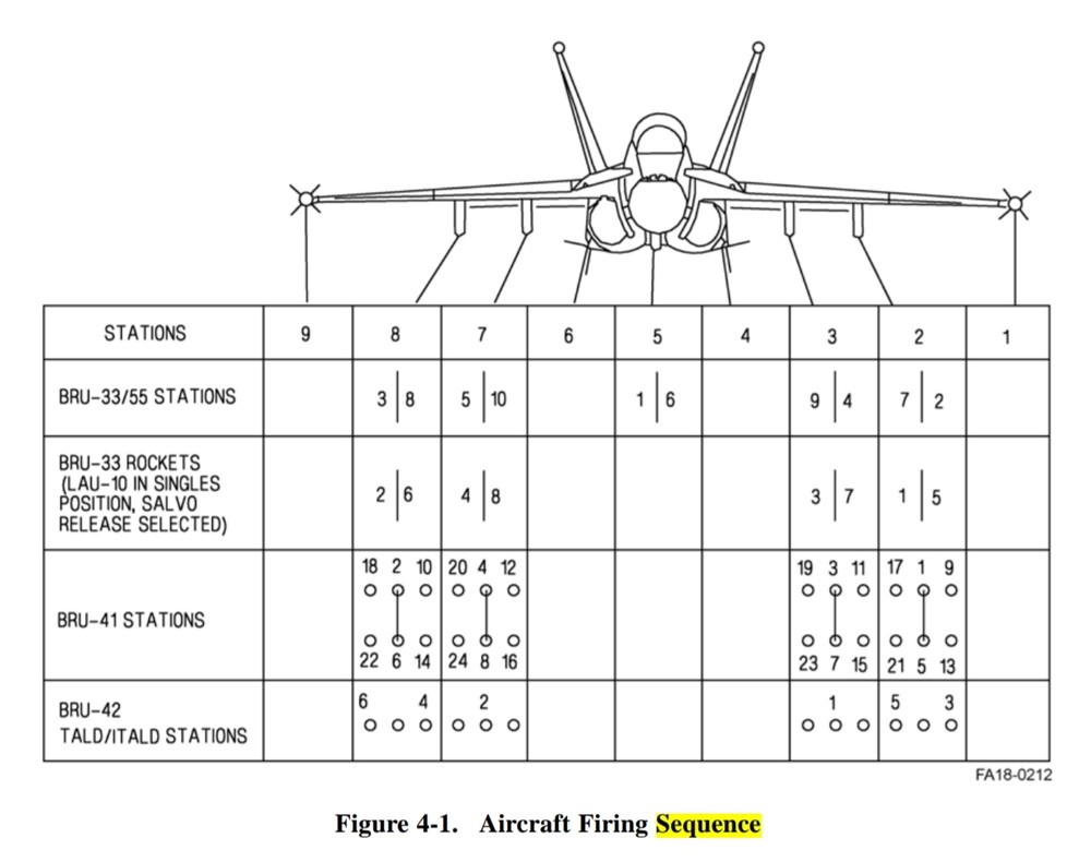 The graphic is ambiguous for mixed carriage. The explicit answer is in the NTIP manual, which is not available publically. Reading between the lines, stores carried on BRU-32 parent racks would follow the same initial pattern as the BRU-33 sequence, starting with the centerline. -