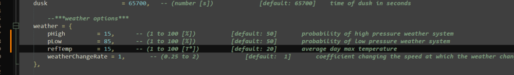 null Which version of scriptsMod are you using? Because I did indeed have a major bug with weather generation. However, it doesn't sound like what you're describing. Can you push your mission here? In the screenshot, I posted the settings needed for bad weather, but with 50/50 it could be mixed.