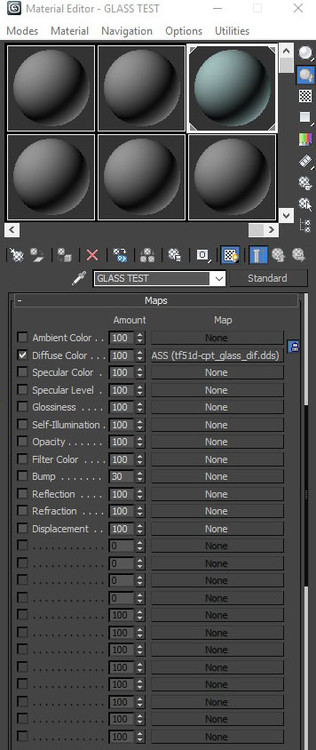Hi, currently learning the import process but have run into a problem with glass for wip vc.. Nommatter what i try there seems to be no transparency. Have selected glass for the mtl attributes in the editor and have tried the stock p51 .dif & reflect .dds to make sure is not an issue with the textures. Currently have diffuse selected for diffuse color but was not sure if the refl or opacity slot had to use the refl texture or be left unchecked? all other textures work perfectly only have an issue with glass. Thanks