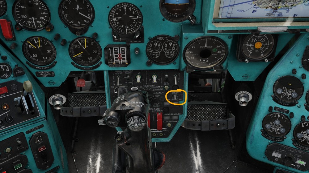 10. The pilot-operator's cyclic is parked out of the way by default. When you Request Control of the aircraft (I think the default key is C) the cyclic will unpark, the anti-torque 'pedals' will pop in from the sidewalls, and you will have control of the aircraft from the front cockpit. There are two things that affect this: One is the Petrovich AI Auto Handover setting. The other is if the mission was saved with Simplified AI enabled. In this case you always control the aircraft, no matter where you sit.