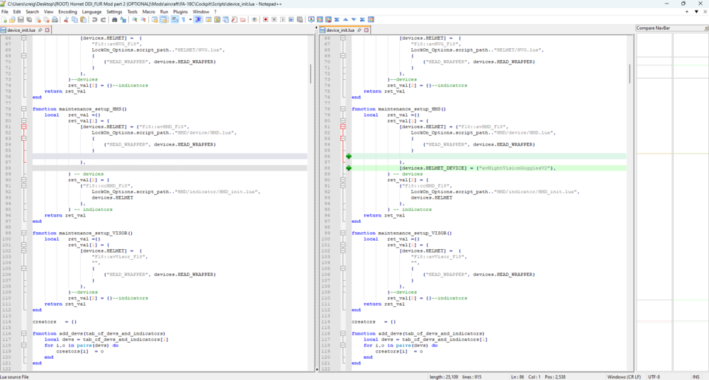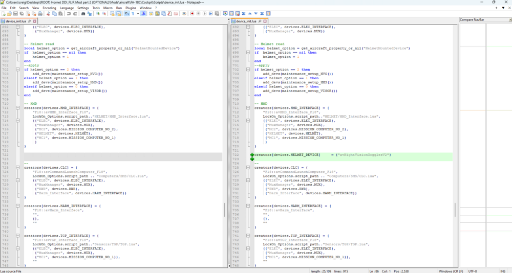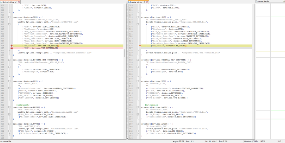 Unless i had an older version of the file there were 2 lines missing from the mod file that were in the ed file. One regarding tgp and the other regarding rwr. And 2 lines added regarding the code you posted. Also the devices.lua needed edited to maintain the original file sequence.- 230 replies