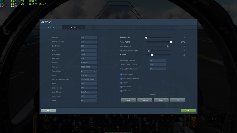 Slow Performance on Alienware 17 R4 Hi guys, I'm trying to do a new post, but seems to be my account on this forum doesn't allow. I need some help with my system. I just got decent frames overclocking my CPU on LVL 03 overclock from alienware. I would like to know if it is normal for a alienware 17 r4, frames about 38, 30 FPS on cold start F/A 18 with graphics on low. Alienware 17 R4 GTX 1070 i7 6820HK 32 GB ram DDR 4 3 SSD'S= 100 GB, 128 GB, 960 GB (the game is on this) 1080p resolution Any thoughts? Thanks