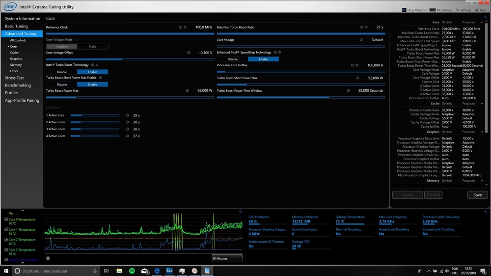 I forgot another important thing. With the overclock, got 4.0 GHZ on CPU constantly, usually 40 or 36% load, GPU 60.. 80% use and FPS nearby 60Fps with vsync. Some drops to 50.. 56 Fps. The problem is. The temperature at 80c and some top at 94c...