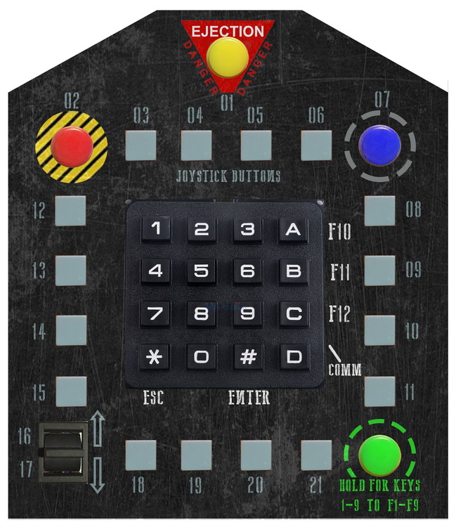 Really cool, I love it. I have not to much space around me, so I cannot build my own cockpit but I try to improve the controller as I can. ATM I do not thinking about a new panel, but something small that I can attach to the throttle panel. But in the middle term, I like to expand the throttle panel with some (lot) button and knobs. I do not belive two state switches, because every time when I respawn I need to turn them or I accidently do unwanted events (for example the landing gear is up when I restart on runway). I belive buttons and rotating encoder and ON-OFF-ON switches is the best solution for sims specially in VR. There is my first VR friendly controll panel. I use different shape buttons, so it help to know where is your hand in VR blind. 28 button (21+6 on the encoders) + numbers + enter(*), esc(#) and COMM etc. With the green button I can use numbers for F1..F10. It's small and working very well. It's simulate a joy and keyboard as well. I made before I bought my TM hotas for my Saitec cyborg3D joy. I want to mix the throttle modul with this sometimes.