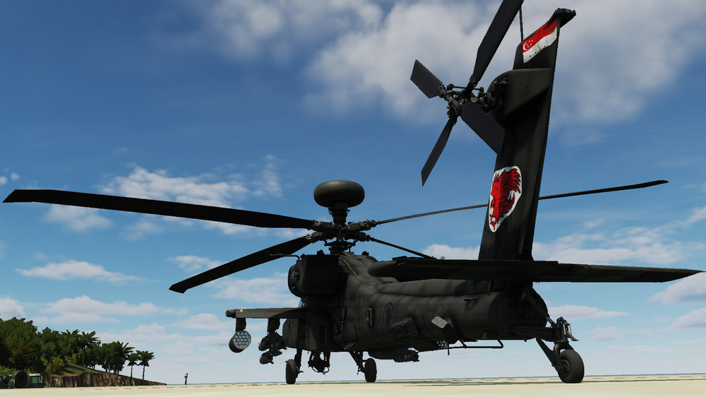 RSAF 120 Squadron, Republic of Singapore Air Force AH-64D Will be flying under the UN flag since Singapore is not currently included in DCS World. Very interesting real world livery as my 2nd submission RSAF 120 Squadron squadron emblem New Asian pilot texture New Asian CPG texture Custom uniforms with patches Custom normal maps Custom roughmets Custom weathering Link : https://www.digitalcombatsimulator.com/en/files/3322153/