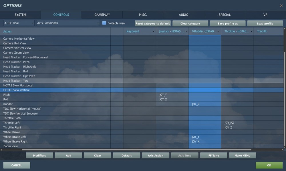 What's that? Edit: checked it, it was set to 100% I went as far as deleting and reinstalling the game... to my horror, all the presets were still saved. Then I basically tried whatever and restored default settings for the throttle (the ones that didn't work to start with). The mystery deepens: - now the throttle jumps back and forth ingame from idle to off position, except when I move the physical throttle. - some switches on the ingame control panel jump back and forth - in the keybinding menu, it's like JOY_BTN26 and JOY_BTN29 are constantly giving signals