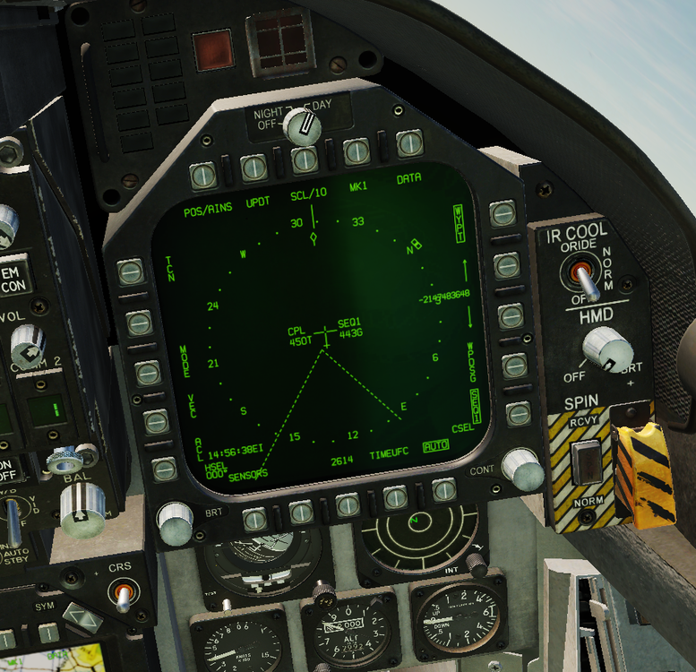 I'm trying the new Offset feature for hornet, but it is confusing me. fist i tried to make an offset from waypoint 1 to a smoke near waypoint 5. from F10 map the smoke is 33.19nm/295 degree from waypoint 1 (Bullseye), when I put this information in waypoint 1 offset, the ATFLIR is not even near the smoke at all (using 295 true). - After multiple tries; I found the best ATFLIR position near the smoke is 330000FT (54.31Nm)/299 degree (true)! but the point is not correct on HSI! - If i put 54nm/299 (true) in the offset ATFLIR goes far away from the smoke (maybe conversion from nm>>feet in ATFLIR is not correct) - The best position near waypoint 5 on HSI is 33Nm/290 degree (true) did I miss anything here? - Is there a way to put 54.31nm in the UFC, without converting it to feet? - Is there a way to put 299.5 degree in UFC? - Clearing BRG/RNG from the offset waypoint keep the OAP in HSI? don't find a way to remove the OAP from the waypoint other pics in the next post.... other Pics ....
