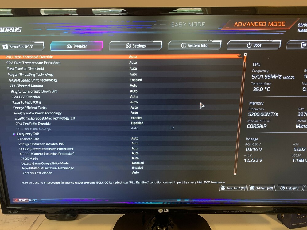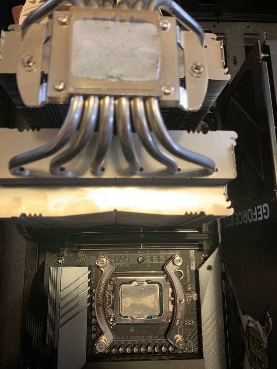 Thanks for getting back to me so quickly with some suggestions. I cannot see anything to that effect (boxed or air) in the BIOS menu and I know that the Noctua NH-D15 has been tested and shown to be just as cool as many AIO cooler add ons when fitted correctly of course, which it certainly seems to be. Having said that, I am happy to try anything. In that vein, here is the BIOS menu options shown under the BIOS "Tweaker" menu. I have also attached a picture of the paste that I had on the CPU, I have wiped off the old paste (that was in this picture which shows it was even at least) and reaplied a slightly smaller amount. I then reconnected everything and I turned it all on, ran another session and it crashed again with Core Temp showing that the highest temp had peaked at 96 degrees C. Those temps are representative of what appeared in the crash log attached. I show all this becasue I am not sure which settings Turbo settings you're asking me to change. Perhaps this will help you to determine which way to go. Is there any other app that I could perhaps run on the side to see whether it is indeed the temperatures that are causing DCS to wig out. "CoreTemp" shows me high temps (which at least theoretically should be fine) but anything that might show the cause of the CTD if it is not coming up in the DCS log perhaps. dcs.log dcs.log.old