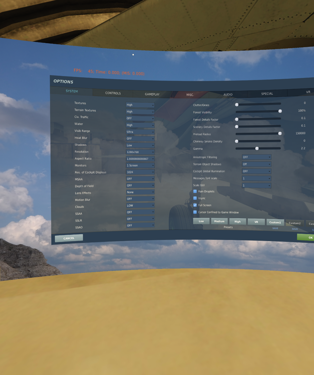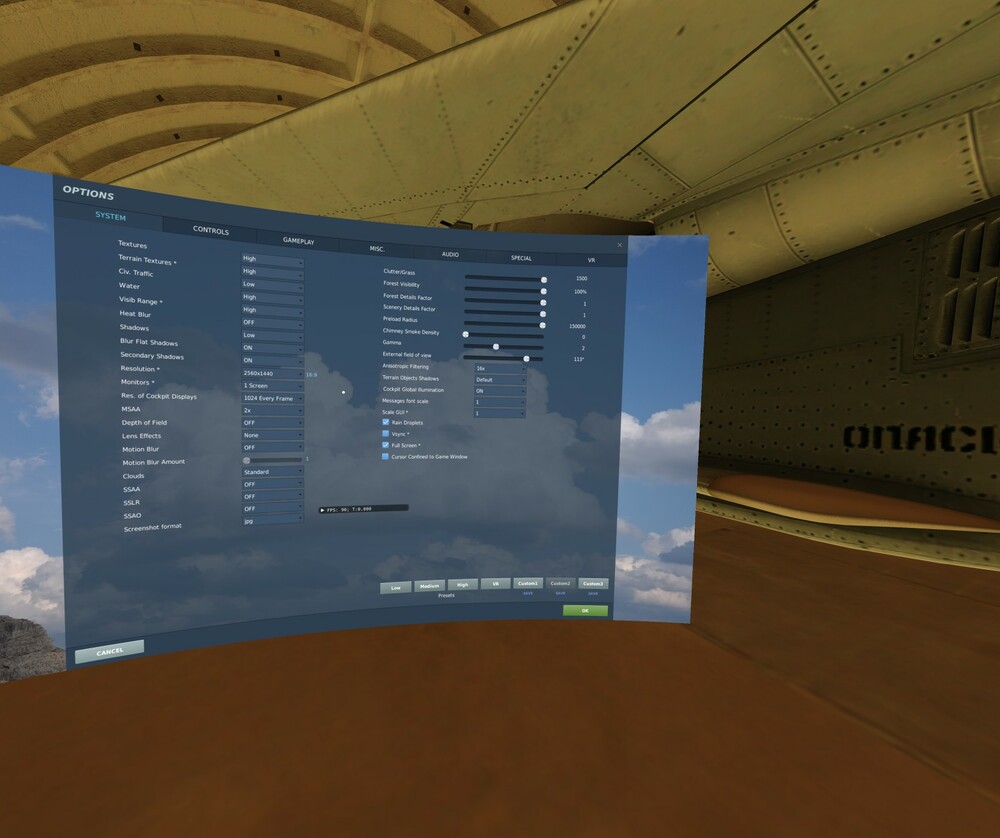 Not sure if this will help anyone but here’s what I getting in 2.7 I9 9900KS 5.0g 32g DDR4 3400 EVGA 1070ti and Rift 2gen. nvidia setting are default. Clouds 8 caucuses map. Pictures say everything, lose a few FPS while on carrier “a lot on activity” Most of the time it's 45FPS But all in all very nice work ED! No the clouds are not perfect but then again I do a recurrent every year in a level 4 sim costing a lot and the clouds in it are CRAP!!!! On a side note seeing a SA11 coming up out of the cloud right a you is something to SEE! It really get you going! Again well done ED……’S’