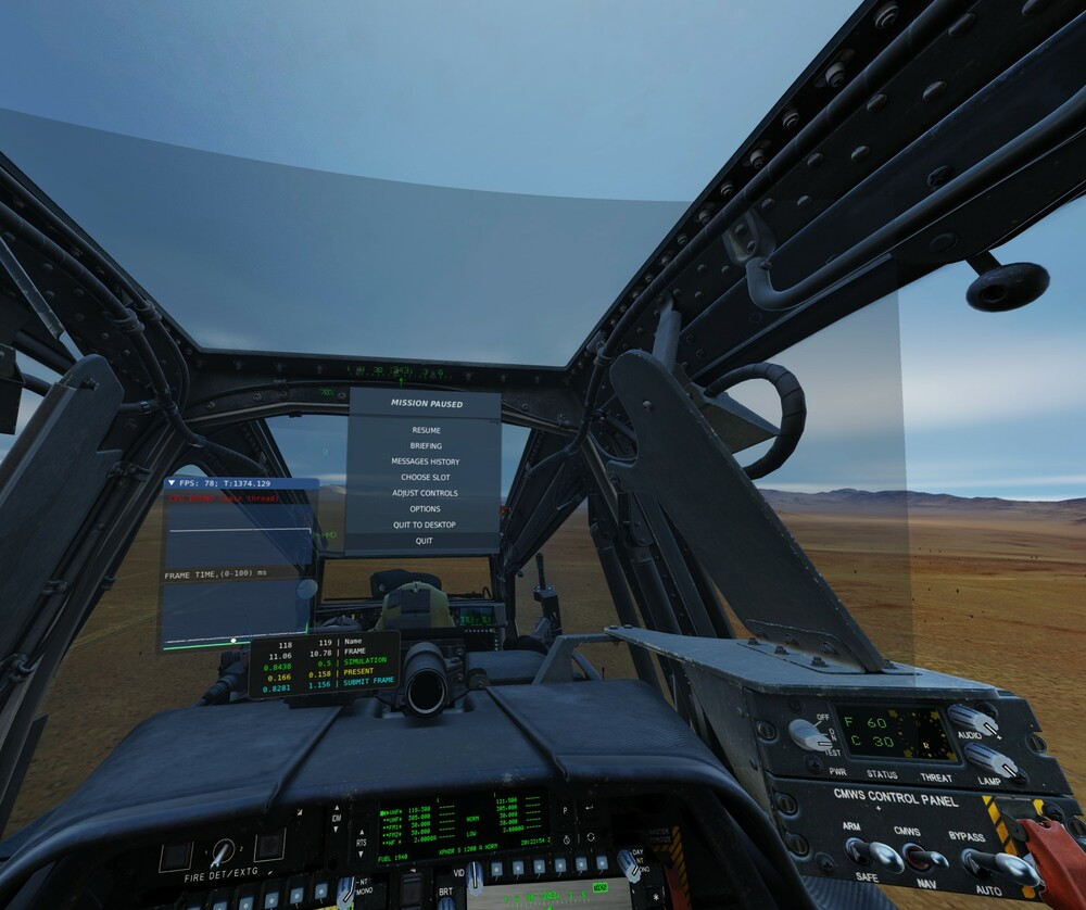 Major improvement with bin-MT from 45-50 fps to 90-100fps 75fps in AH-64 with rain caucus map System= i9900ks 5g 64 ddr4 3800 Corsair dominator Asus ROG 4090 Pimax 8kx normal FOV PD 1.5 OpenXR for Pimax (((((NOTE)))))) NOT running command line -forceXR -forceVR Again not running the command line setting DCS PD .5 Max setting on all but clouds and shadows are flat with blur. I will say I had just installed the 4090 on 3/9 and the FPS was 45 to 55 with lower game settings. Also I don’t think it made any difference without the command line because I’ve been running game like that for a few weeks. I’m seeing 75% increase load on ALL 8 cores and 16 threads. Also see 25% use of VRAM and GPU AND 60 to 70% increase. Have to say EXCELLENT JOB ED