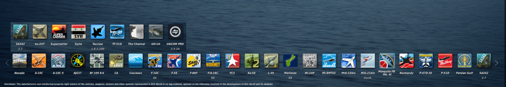 DCS have made a lot of modules over the years. One would get a much better overview of the modules if they all would be displayed on the main title screen at once instead of having to scroll through them at the bottom. The main page area is completely unused except for showing an image, and could be better utilized. Something like in the attached image.