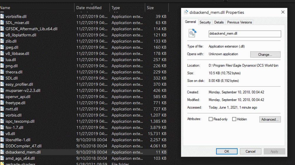 Been using BN's autoconfig too.... I keep coming back to the dx11backend. Just gave that dll full access on all system/users/etc. still crashing. The darn thing is that sometime sit doesn't! More stuff I've looked at: dxdiag.txt Fault bucket 1632219489306657687, type 4 Event Name: APPCRASH Response: Not available Cab Id: 0 Problem signature: P1: DCS.exe P2: 2.7.1.6709 P3: 60adebf9 P4: dxgi.dll P5: 4.9.1.1003 P6: 5ffa0e92 P7: c0000005 P8: 0000000000036c83 P9: P10: Crash report: C:\WINDOWS\SYSTEM32\d3d11.dll # C0000005 ACCESS_VIOLATION at B8606BAE 00:00000000 SymInit: Symbol-SearchPath: '.;d:\Program Files\Eagle Dynamics\DCS World;d:\Program Files\Eagle Dynamics\DCS World\bin;C:\WINDOWS;C:\WINDOWS\system32;SRV*C:\websymbols*https://msdl.microsoft.com/download/symbols;', symOptions: 528, UserName: 'Daddy' OS-Version: 10.0.19042 () 0x100-0x1 which this is interesting rabbit hole C:\websymbols*https://msdl.microsoft.com/download/symbols; Microsoft Internet Symbol Server The data you requested cannot be retrieved. You have reached this page because either you or an application that you are running has tried to retrieve debugging data from Microsoft. The requested data is either not available or needs to be retrieved by using the latest Microsoft Symbol Server technology. The data at this site is not accessed from a web browser. Instead, it is accessed by the symbol server technology that ships as part of the Debugging Tools for Windows and Visual Studio. For more information, see Symbols for Windows debugging (WinDbg, KD, CDB, NTSD) and Specify symbol (.pdb) and source files in the Visual Studio debugger.