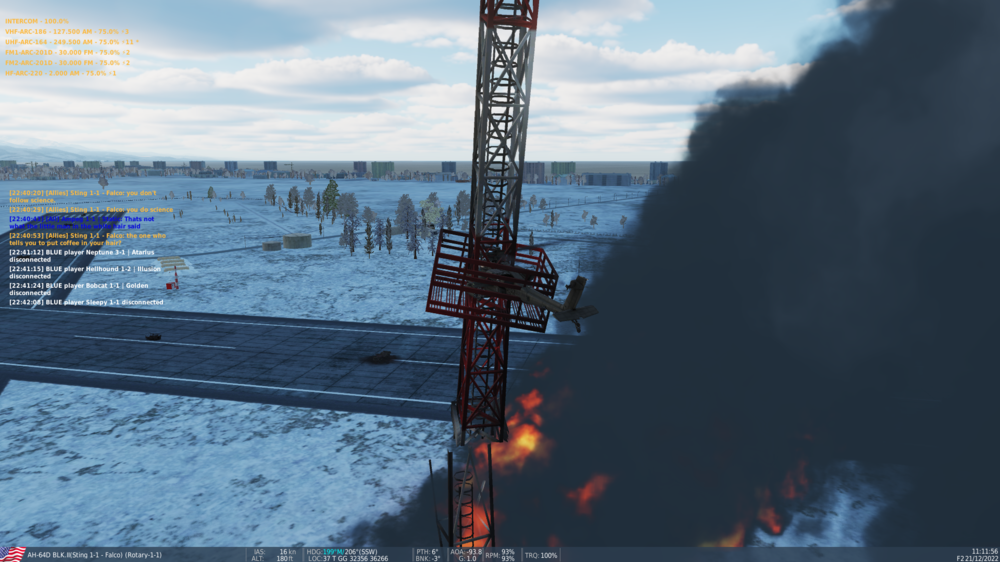 Another thing is that squelch off would only be used in circumstances where the circuit would suppress legitimate transmissions, such as being far away from a transmitter or having a broken antenna or something of the sort. From what I understand, the aircraft remembers the last state of each squelch circuit after shutdown. During cold start they are all off, which makes no sense. While not strictly wrong or a bug, it's inconvenient and unrealistic that the last person to fly the apache would've switched them all off. I have also noticed that I get no background noise when they are off, only noise overlay when receiving a transmission, including intercom from ground crew. But just letting through the audio without a trigger point is the whole point of turning squelching off, so there should be static noise always. This is also why squelch should be on by default, no sane pilot would keep their sanity for long if they were listening to 5 radios blasting static into their ears all day long, so they likely didn't do that in their previous flight. When I get a transmission, I do get static noise, but that's exactly when there should be no noise heard at all, since there is an active transmission in the air. What should happen is that when squelching is on and receiving a strong enough signal, the audio you get is exactly the same as squelch off and receiving that same signal since it's just a trigger point on when to let that signal through or not. I also get noise on all 5 channels at once when receiving a radio transmission on one of them. This is wrong, addressing the other two bugs should automatically create the correct behavior for this as well, but it's probably worth looking into as well. The correct behavior would be 4 times static from 4 radios that don't receive and 1 normal transmission. I have not yet noticed different volumes on the noise depending on hot or cold start, but I have not paid attention to that, since I usually just turn squelch on.