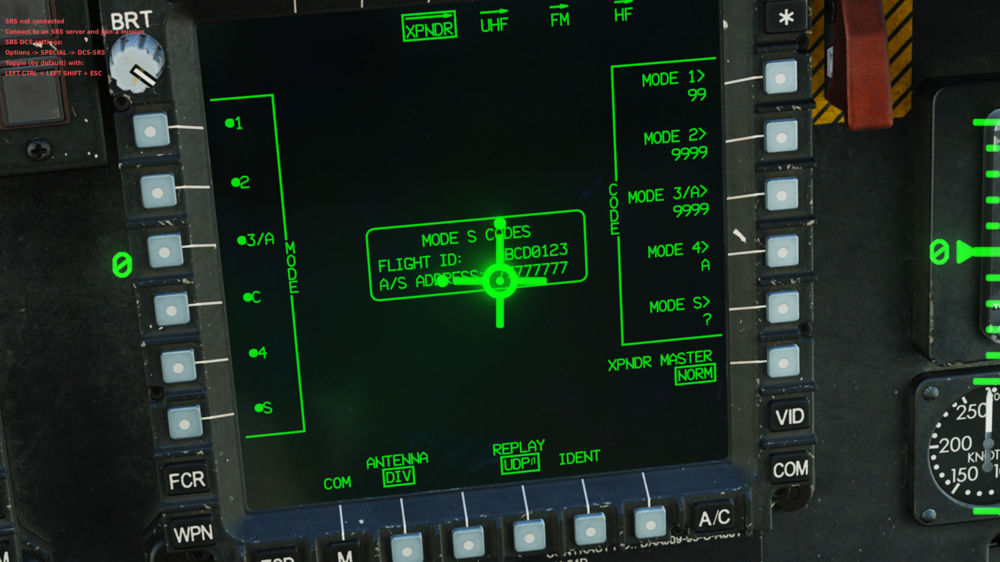 Mode 1 is 5 bit, it should be 0 to 31, or 0 to 37 in octal, but accepts values up to 99 Mode 2 is 4 digit octal, so it should be 0000 to 7777 in octal, but actually accepts all decimal digits Mode 3A is also 4 digit octal, also 0000 to 7777, but accepts all decimal digits Mode S Address is 24 bit octal, curiously this one works correctly (0000 0000 to 7777 7777). Mode S Flight ID seems to accept any alphanumerical string, but it must be 8 digits long. no idea if that is correct. Mode 4 accepts A and B, which is correct. REPLY is mislabeled REPLAY (But correctly labeled in the submenu when clicking the OSB) Reply options should be "UFD" (Up Front Display), not UDP. While at it, pressing the ident hard switch on the radio panel doesn't invert the ident option on the comm->xpndr page. not sure if that is correct.