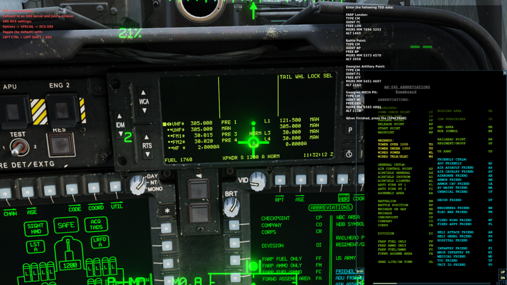 from what I can tell, the missile goes after what the CPG shoots at, even if there is a desync in the TADS display. I've had shots hit with desynced TADS and shots miss with everything being proper. Also I don't think the INS confidence has anything to do with the actual drift, I believe it's just random values that simply change once alignment is done, but otherwise don't mean anything. INS reset and then waiting always seems to help, no matter what the displayed confidence is. INS should not drift as much with a modern laser ring gyro set and constant GPS corrections. It's constantly correcting and keeping track with the doppler ground radar. Also INS shouldn't be apart in any of this, but it somehow is. The missile should get the direction from the TADS angle and laser range, build it's DBS picture of the area, acquire and then track the point. And even if it were INS related, it would have to have it's own independent INS, not being fed any information from the helicopter about it's current position, then the helicopter would tell it to shoot at some coordinates (which are wrong, due to drife), but the missile is properly aligned while the helicopter is not. Then the missile would go correctly (according to it's own, perfect INS) to the wrong coordinates (from the bad helicopter sent coordinates) and miss. That's the only scenario i can think of where that could possibly happen. But I don't think the missile has a full INS on board, an accelerometer at best, to know the difference in locations after being launched. Could be wrong though. Also with INS misaligned, when the TADS is slaved to a point, the cued line of sight indicator (the dashed cross) is not centered in the display. The TADS is pointing offset according to the bad INS data, but the indicator somehow knows the exact position of the point. And that's when the hellfires miss. I don't feel like making a bug report with the next update being around the corner, which might fix this or break it in a different way, but this is a complicated mess. -
