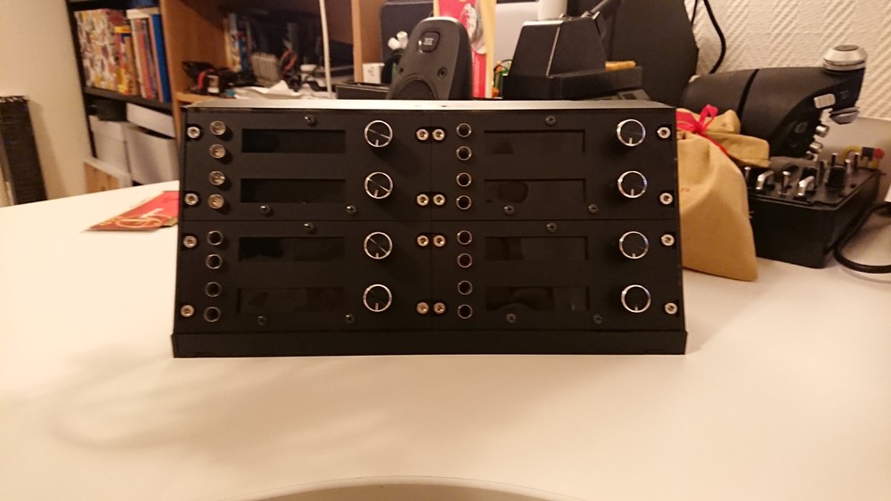 4. Picture of the panel(unfinished): For quite a while i have wanted to build a control panel of some sorts. The more serious planning started about two years ago when i was very into Kerbal Space program, and i started browsing the forum there for people who made their own panels and switch boxes. I never got around to building something for KSP, but i did a lot of planning for it and looked at a lot of different techniques and such. Not too long ago i got access to usage of the laser cutter at my workplace. This really started the thoughts of building something again. I quite recently got into DCS, but i never really considered building panels for it since i am using VR. About one month ago i tried out the AWACS-role on GAW and i really liked it. Then i had the idea that i could try building a panel for all of the radio controls! I managed to design and construct the panel, source the parts i didnt have lying around and right now i am in the process of finishing up the hardware and the software. I am using the UDP-interface that SRS implements to read and control all the radios. The UDP-messages are recieved and parsed by a Java project that i have been writing. The Java program then sends the info to an Arduino over USB (serial). Most of the functionality is done at the moment, i just need to get done with all of the wiring. The paint job is also a bit shoddy, but it doesnt really bother me that much at the moment. Radio panel(unfinished) with some of the components working: For the full album: https://imgur.com/a/YGzcVw9 Dont know if anyone is interested, but this document explains what is connected to what, and what the functionality of some things are: A short video to show some of the function of it: https://streamable.com/s/67xac/uhcubt