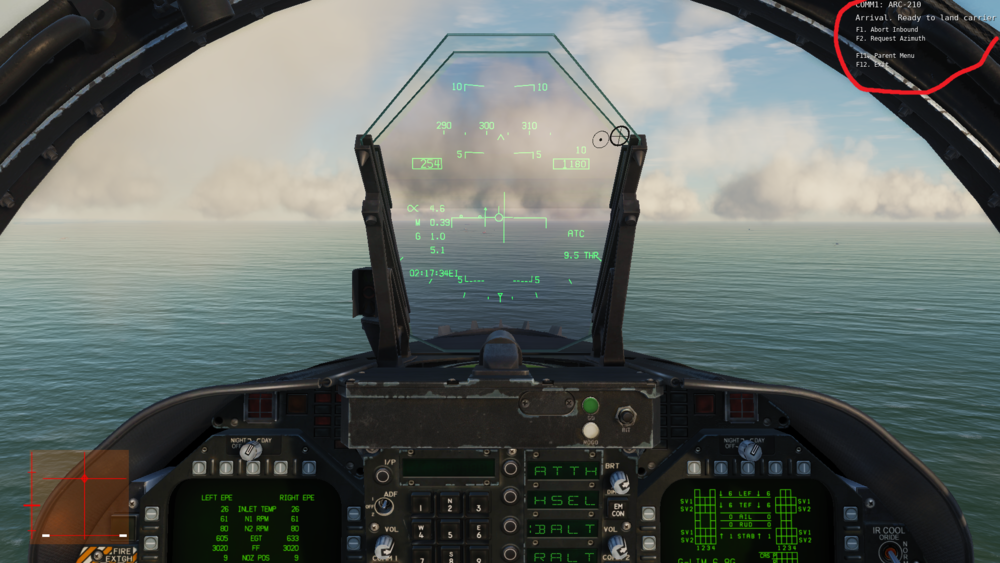 I was arriving with CASE III, had a bolter and turned around for another approach, however incorrectly. Radio menu looked as if I never contacted the carrier (no >> behind carrier name), which is not unexpected since i left the procedure with my errors. However, when within 3/4 mile, I started getting messages from LSO. Cool, I opened the menu to see if I can call the ball again, and instead I saw this As you can see, the name is some internal name and I didnt even have an option to escape it or return to higher level menu. After landing, it transformed into the ordinary "Arrival. Parking" Track is messed up (long), sorry, but I will keep it mind and try to make another one if it happens again.