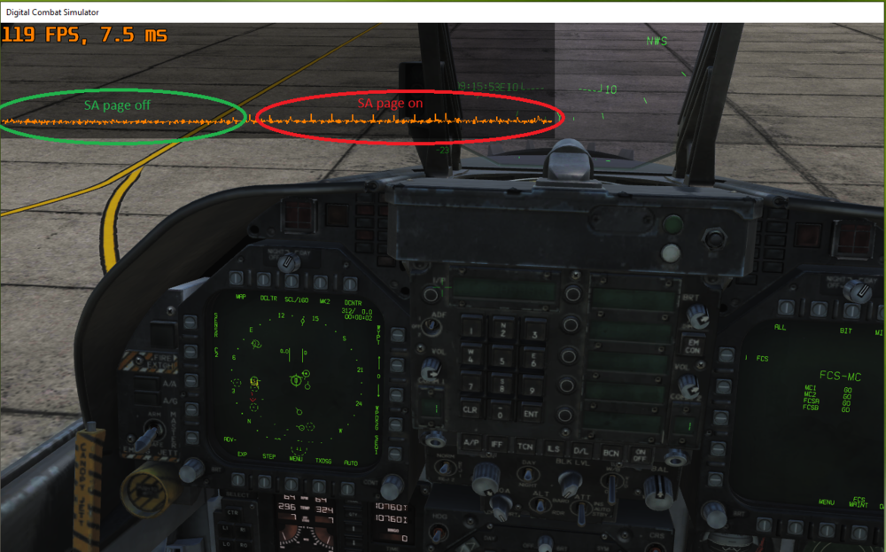 [REPORTED] Microstutter with SA page selected (DL on only)Captain Slow replied to Captain Slow's topic in Bugs and Problems * It seems like the stutters are tied to the rendering of the SA page's targets. If I am in a continous turn the targets are only repositioned on the SA screen sometimes (like 4 Hz), and it seems to match exactly the frequency of the stutters. * Windowed/fullscreen/gsync/vsync settings have no effect on the situation