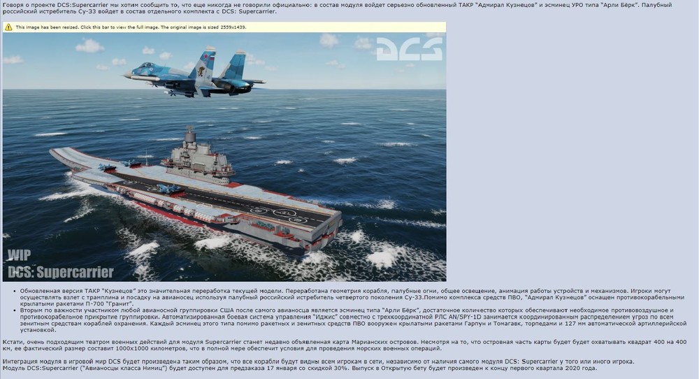 А просто ответить уважаемому Bubi - не? Меня тоже интересует вопрос, будет ТАКР Кузнецов или нет, т.к. я купил модуль Суперкариер. И до сих пор не понятно - в новостях - он будет, а в DCS магазине о нём ни слова...