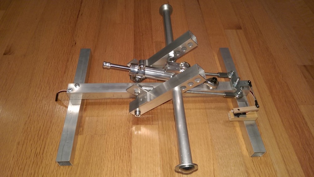 There are ball bearings or spherical rod ends at all the pivot points. The unit was very free before adding the damper. Which was actually the reason for adding the damper as the pedals would not hold there place and flop freely. Do the RC car shocks you used for the cyclic have the same "stiction" effect? I need to find a solution for adding resistance to the cyclic as well. I am trying to simulate the feel of Robinson R22 controls which are not hydraulically assisted as in the R44 you fly. I have only .8hr in a R44 and 1.1hr in a R22, so need some more flight time for calibration soon. I feel like the resistance of the steering damper is good, and also nice that it is adjustable, but the "stiction" would be unacceptable on the cyclic. Maybe I have to try the rotary dampers that others have mentioned. I'm eventually probably going to have to build another cyclic and collective with dampers for resistance and either better pots or try the Hall effect sensors.