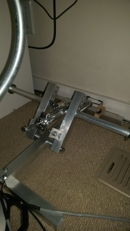 Yes, I have flanged ball bearings on either side of the square aluminum tubing "stalks" that the foot bars are connected to for the pivots. I may try connecting the damper further up the stalks to use more of the travel, even at the expense of the mechanical advantage. Perhaps that may make the stiction less noticeable. I have so little time in the real helicopters, I almost don't remember what the cyclic feels like, only that there is more resistance than my Logitech 3D Pro without centering spring. My .8 hr in the R44 was an intro flight where the instructor never really took his hands or feet off the controls, so I felt a lot of resistance, even if it had hydraulics. The R22 doesn't feel clunky at all. It was smooth, with a fair amount of resistance like in a car steering wheel, and a small zone around where the stick was where there was less resistance. Not slop, though. I need some more time in the R22 to get a better feel to compare with the sim controls. I know right now that I'm not even close on the cyclic and collective that I have. Not even sure I'm close with the pedals, but at least I have some resistance now. Interesting information about the Hall sensors, I have to say that I'm probably more comfortable dealing with mechanical stuff than electronic stuff. So I'll have to think and learn more about the Hall sensors versus gearing pots. I'm coming to the sim world from RC helicopters, and I can see that this is an entirely separate hobby on its own. I got started because I thought the simulator would be a good way to build muscle memory to fly a full size helicopter, and way less expensive.