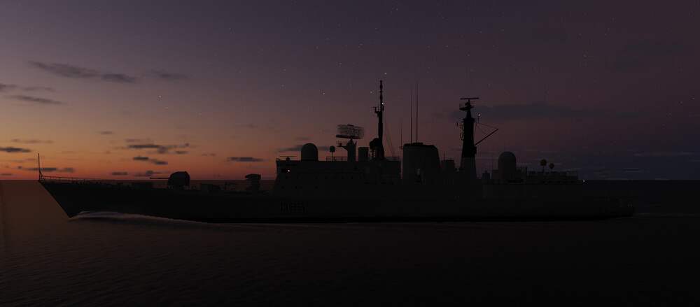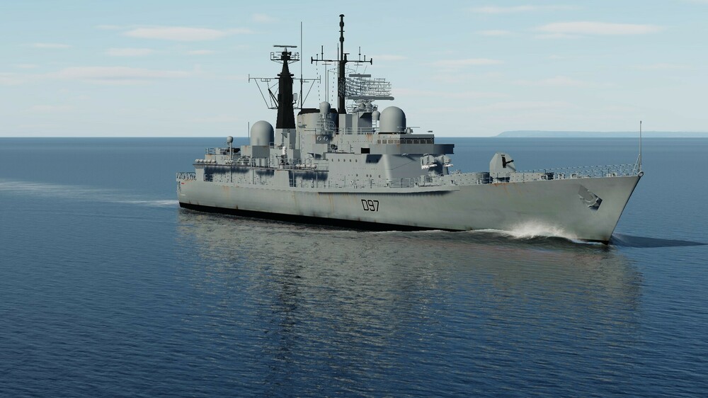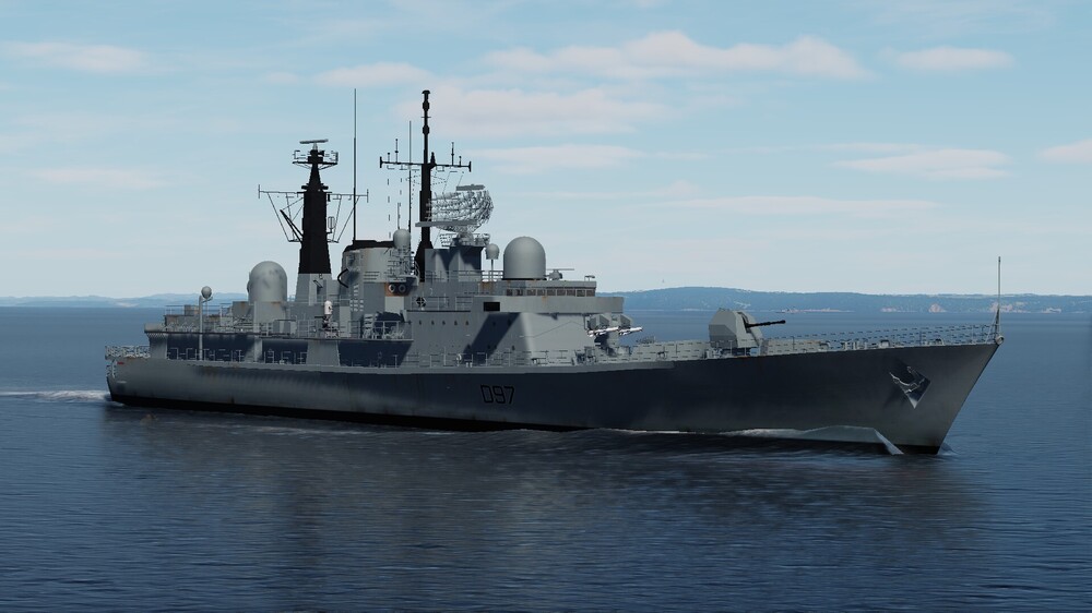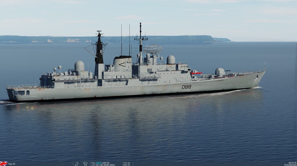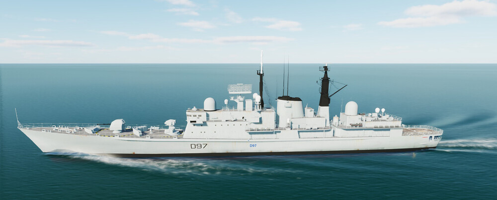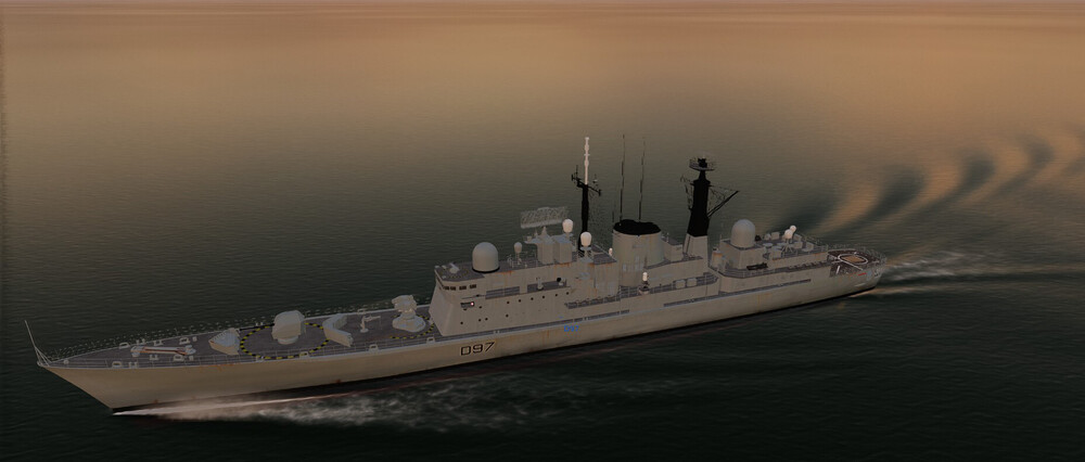 As some of you mentioned the lack of Royal Navy vessels with DCS world, and I posted a picture of a Type 42 batch 3 destroyer within the Admirals thread. I wasn't planning on releasing, but decided to throw caution to the wind and give it a go. The Type 42 Btch 3 ( extended hull) will come with : Sea- Dart surface to air missile sysytem 2 x Phalanx CIWS 2 x 20mm Oerlikon 1 x Mk8 4.5 " Deck gun 4 vessels of the batch 3's will be available HMS Edinburgh HMS Manchester HMS York HMS Gloucester There's She can support Helo's up to the size of Merlins. There's a basic damage model, so she can take damage and can sink. Beldin has been working on the lua, as there was an issue with the missiles not launching, and the scale of the seperate sea dart on the launcher wrong. Textures are not the best, they were fine for me for what I was using her for ( eye candy) The attached screens may have different Ships numbers so disregard. I will look to release once ED fix the coding for the missiles