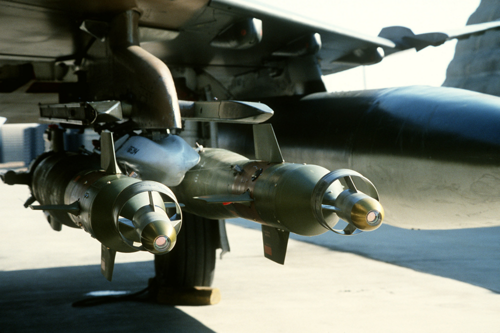 Here's photos of GBU-12's, loaded in pairs, underneath (empty) Sidewinder rails. To my eyes, without @LanceCriminal86's LAU-34, it looks like AIM-9 fins (oriented at the 45s) would interfere with the forward vertical fins of the GBU-12s if you tried to send a Sidewinder down the rail. Perhaps it's possible to use the TER and dumb iron bombs with the bomb's fins only at the rear, and still send a Sidewinder down the rail? Changing gears, does anyone know whether the Paveways' noses will center, aerodynamically or otherwise, in flight. On the ground, do they always droop?