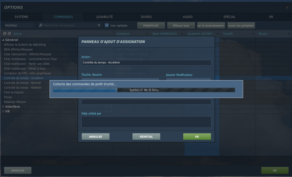 Dans les Menu des Commandes : Onglet Interface Quelque soit la rubrique (General, Interface, VR), dès que l'on essaye de modifier une assignation KeyBoard ou autre périphérique, DCS commence à collecter les commandes des profils et se bloque. In the Commands Menu : Interface tab No matter which section (General, Interface, VR), as soon as you try to modify a KeyBoard or other device assignment, you will see that it is not possible to change it, DCS starts collecting profile commands and crashe.