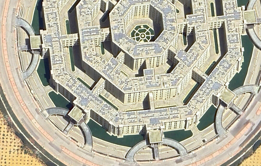 Sounds far-fetched. The "Octagon" has a very distinctive shape, and you can study that complex in great detail, down to the number of solar panels on the roof, using any map. What we see in DCS is, likely, a raw OSM output named "dense urban area" or something generic like that. And OnReTech didn't bother modelling this landmark... yet?