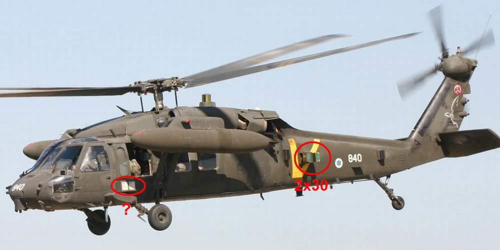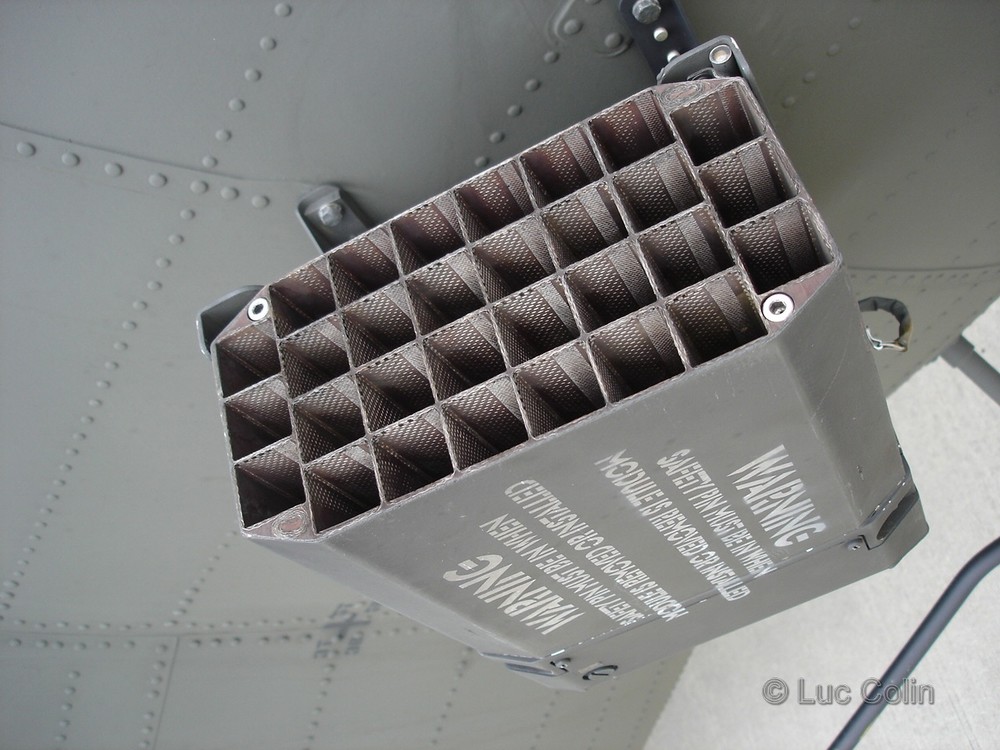 22. UH-60A На первом фото стандартная кассета ЛТЦ для UH-60. Кол-во 30 шт. На американском варианте вертолета, такая кассета одна, с левого борта. Отстрел вверх-назад. На остальных фото мы видим израильский вариант. Видно что крепление блоков ЛТЦ на балке по правому и левому борту. Кол-во 2х30 на каждый борт, итого 120 шт. отстрел в стороны. Еще видно есть какие-то гнезда, для крепления каких-то блоков, в районе кабины. Что там, можно только предпологать, либо ЛТЦ, либо сигнальные ракеты. В турецком варианте, ЛТЦ столько же, сколько на американском, 30 шт.
