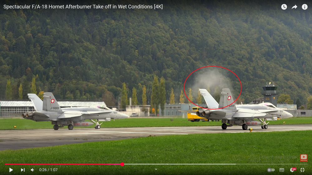 Would be awesome to finally see wet, glossy runways during rain. I don't know if terrain engine allows it, but if it works on carrier, should probably on ground too. With more water sprays and various dust/smoke from engines during takeoff on wet/old/dusty runways. Like this: There are also random faint smoke/leak effects that could be added around the engines during startup like this:
