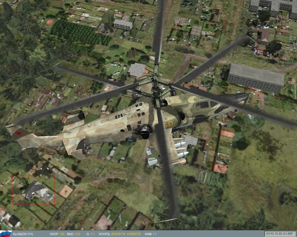 Не знаю, описывал ли кто-нибудь подобную проблему до меня (нет времени копаться на форуме), но я наблюдаю гигантские тени от своего Ка-50 на крышах зданий, хотя на земле тень нормальная (см. скриншот). Видеокарта - GeForce 8800 GTS 320 mB
