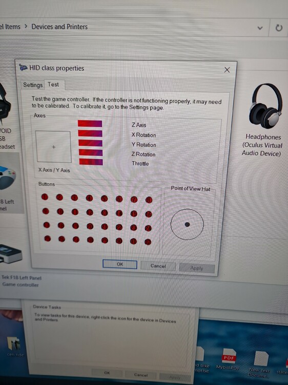 My simpit is pretty much complete...Shout out to LooseCannon for the custom warthog plate and Kieran ( tekcreations ) for the fa18 usb controller...which happens to be the issue... I live in UK, so ordered this about 1 month ago, thought this would be plug n play....sure enough, plug it in, lights up green, shows in devices as FA18 tek Controller....and thats it.....shows in dcs as hid device, ( Well 2 hid devices tbh ) , but cant assign any buttons,dials,or anything to it as no switch,dial, button is shown....go to game controllers on Win 10...shows up as controller , but unable to test any button as whatever i touch,click,dial doesn't work.........And dont start me on DCSBIOS....I am a NOOB.... found it hard enough to install DCS....Am i Doing something wrong to get this USB panel To work with DCS? have reached out to TekCreations, but hoping maybe someone ,somewhere has had this issue too..... Panel is just an expensive Green thing....anyone please?