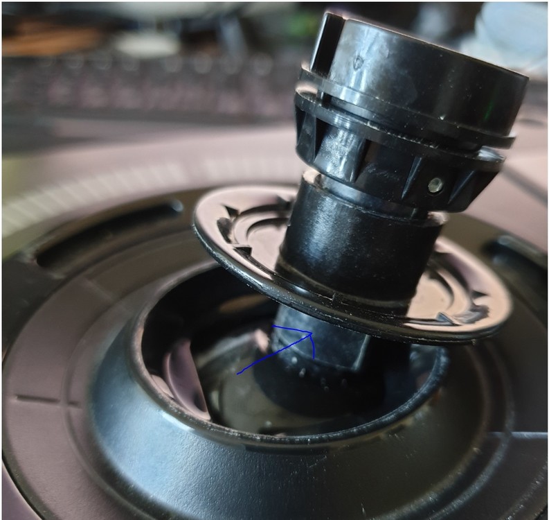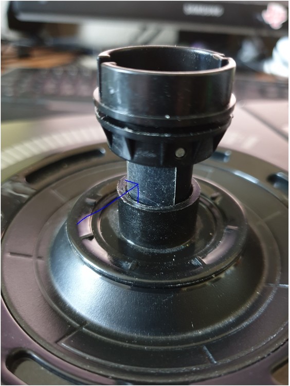 Then with some patience. "Massage" down the plasic film between the center pin and the spring lower part. The 24 mm side of the plastic should be along the center pin. See attachments. A bit difficult to explain in text.