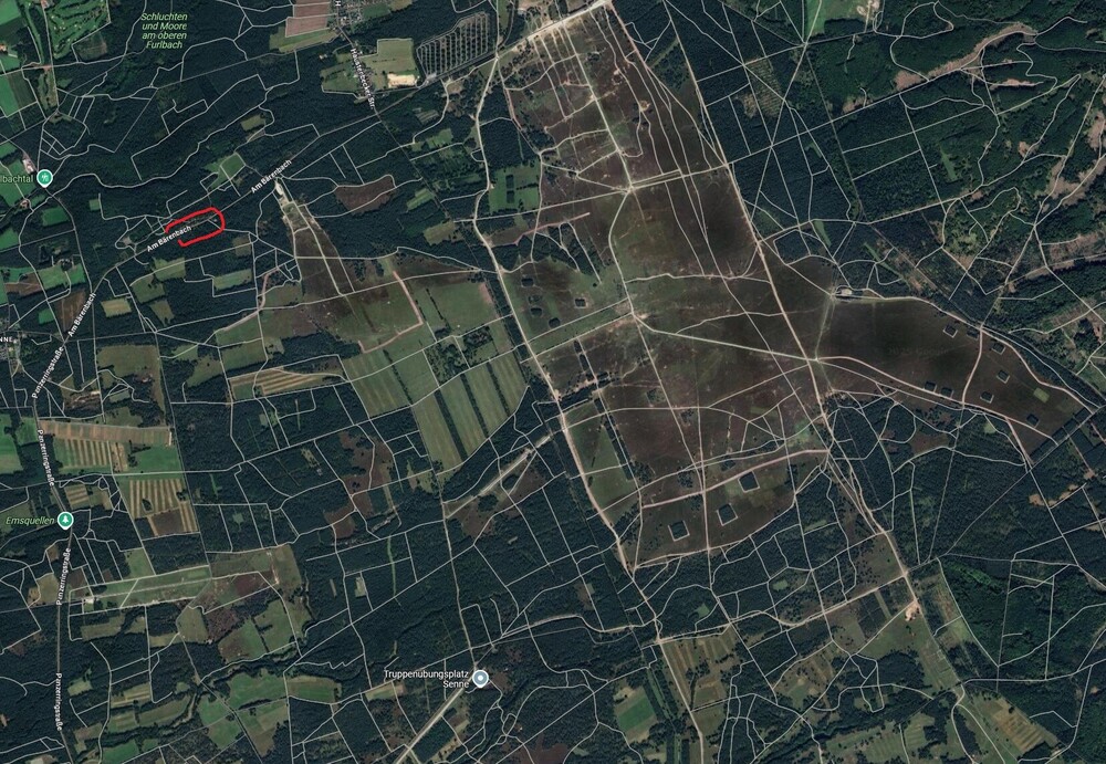 Sennelager, one of the largest training areas in northern Germany. More than 100 years old. Started as camp for the Prussian cavalry in 1851. Since 1890 Training area. Gradually abandoned by the British Army since 2018. Coordinates: 51° 46′ N, 8° 43′ O. Hard to find its position on the Ugra map... -