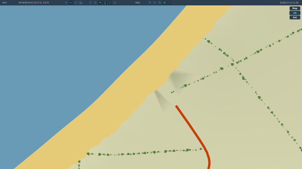 Just scrolling around on the Map in the Editor, looking at the French Coast, then I notice that there's a chunk missing, just like it used to in the PG map, but this time it's pretty much in the middle. It's right on the Coast near Wimereux and most noticeable in SAT view