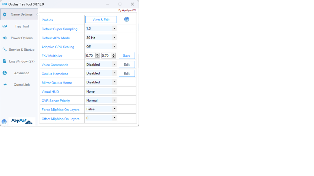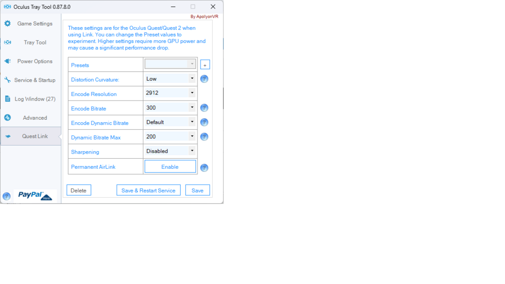 When I don't use the tray tool, my Oculus Link session crashes. The game continues to run. I have to go to the task manager to kill it. My understanding is that I don't need to use the Tray Tool if I'm using OpenXR. My performance is terrible when using the tray tool with the recommended settings (as I know them). I have attached my settings and system specs below