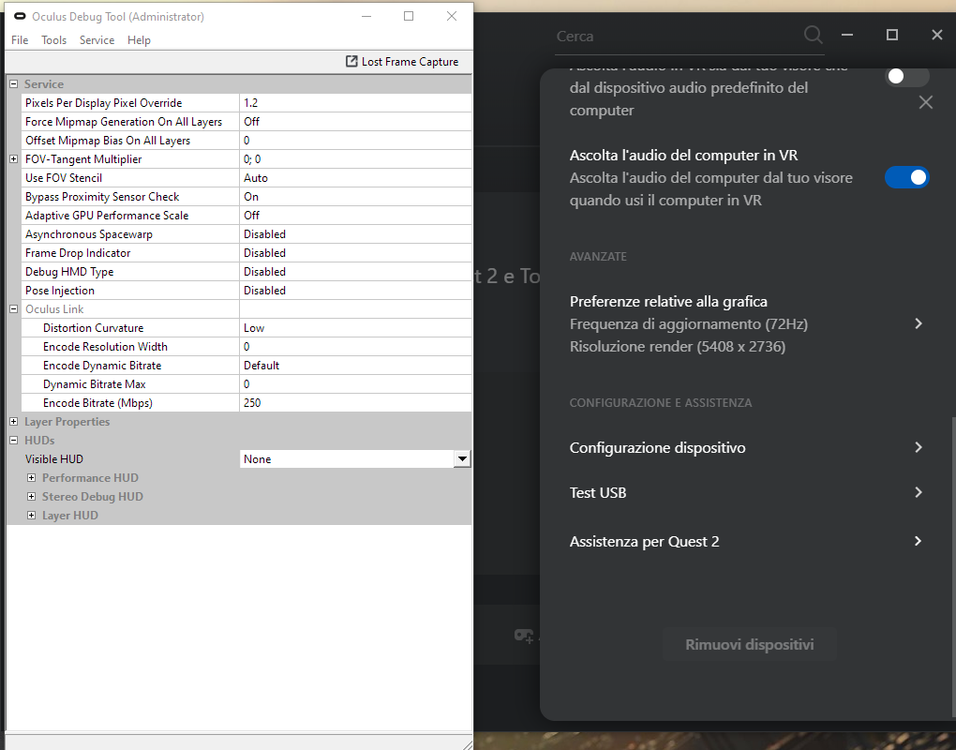 Ciao. Sotto le config. Due note, in MP porto a 72hz nella app oculus ed il super-sample in ODT a 1.2, in SP ad 80Hz e 1.3 rispettivamente. In ogni caso ogni su dcs non c'è speranza di vedere girare le cose decentemente anche avendo a disposizione una centrale atomica, e non parlo solo per il VR... Con la mia config se sparo tutto a palla in 2D comunque non vado oltre i 35/40 FPS...