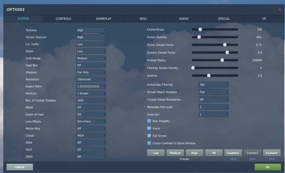 Ciao. In effetti da ODT io disabilito AWS perchè mi crea un sacco di artefatti assurdi. Il fenomeno si verifica in ogni caso sia con AWS acceso che spento... Very strange... In ogni caso succedono cose veramente assurde con il VR. Un altro esempio è che spariscono le vibrazioni più intense nei cockpit... per fare una verifica veloce puoi prendere il 25T e andare in picchiata... anche superando i 650km/h va giù liscio come l'olio, manco un accenno a mezza vibrazione. Togli l'opzione VR e tutto torna come prima... ovvero sembra di stare su un Landini 30 (mitico trattorino d'epoca)... Bhà... può essere che hanno tolto questo tipo di effetti con i visori per evitare di far vomitare le persone...