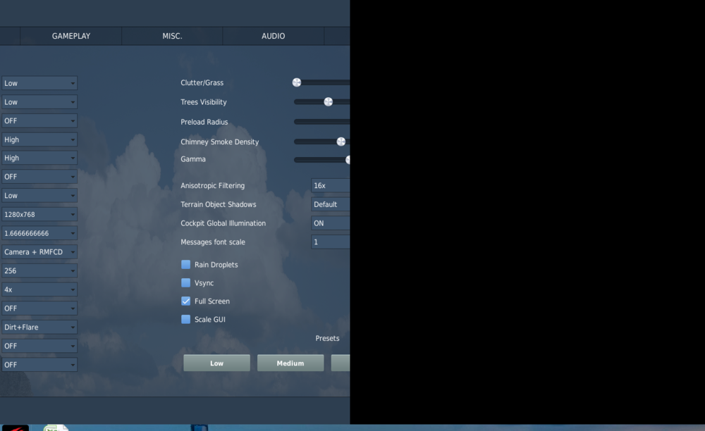 I am a new DCS convert and selected the recommended 2 monitor setting and resulted in half display and half black screen on the 1 monito (see screen shot). Can not change back as the ok button is hidden in the black half . What can I do to restore the original and how do I set up for 2 monitors . Thank you any one Reggie