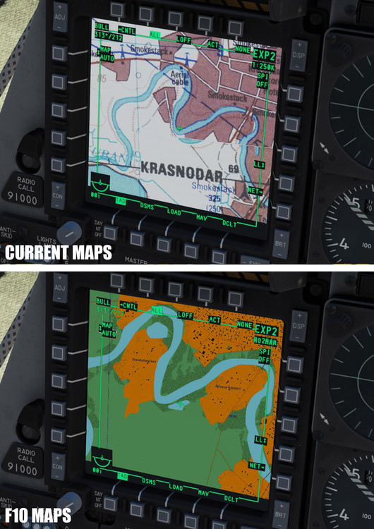 Would it be too much to request from all the Modders to maybe work on this for the A10 guys. This is a Photoshop image as an example of the TAD and not an actual MOD. The idea behind this is to use the F10 map in the TAD instead of the current maps. The current maps are hard to understand and change when zoom in/out. We already have the F10 map available at different zoom levels, why not use that instead of the current maps that clutter things rather than helping. The Ka50 Abris uses the F10 map, and i think this should be possible as well. If not already done and if you feel that this would help the A10 guys greatly and if doable, I request to all modders to please make us this MOD.