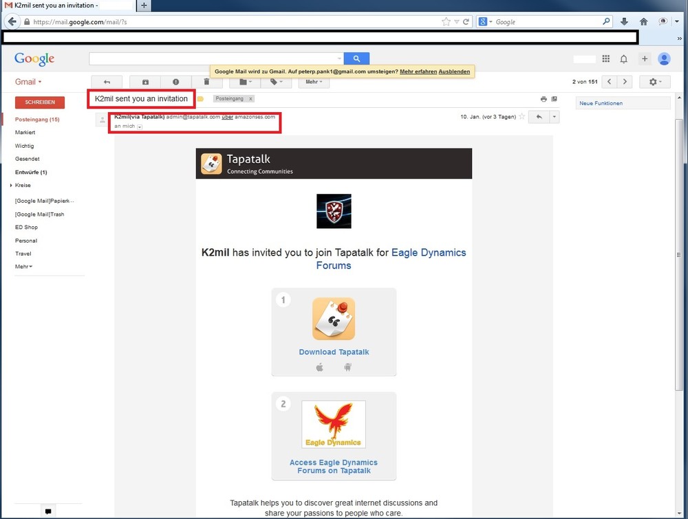 Please ask me before sharing my email address/contact-details with your 'Partners'. THANKS! Let me elaborate: Three days ago I got a invitation from: K2mil(via Tapatalk) <admin@tapatalk.com> asking if I would like to join Tapatalk. See attached: ...I don't want to join - I get enough spam - I decide myself what I use to browse your forum. Why you are sharing my e-mail that I used to register on this forum with others ? Please don't do it again, or ask beforehand. I don't remember that I gave you the permission to give contact details from me to others. I expect to get PM's from 'Friends' via the forum massaging system to my e-mail and only "ED forum administrators" are allowed to send me an email directly. I apologise If I checked by mistake that you are allowed to share my e-mail with other. If this is the case: Please tell me how to switch this off. Thanks.